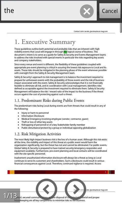 • Search text to find specific information