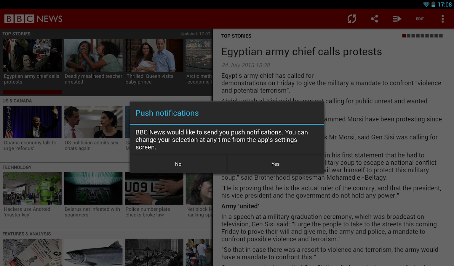 • Opt in for breaking news push notifications