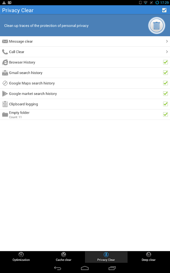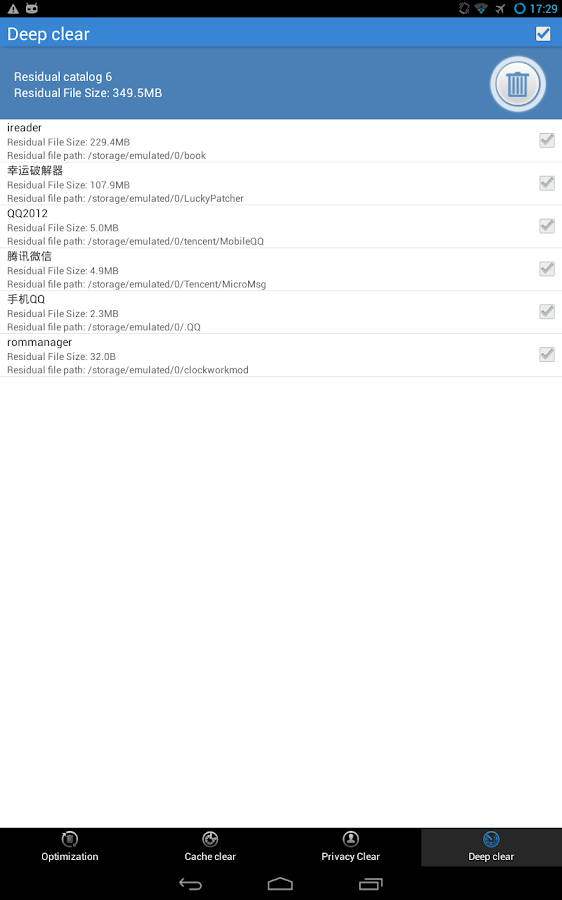 Trail clean: it can search out kinds of trail of the cellphone used, clean it and protect your privacy.