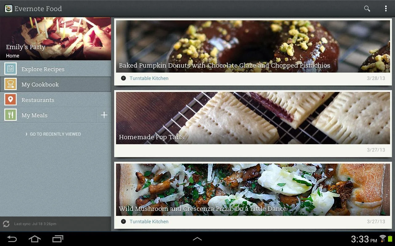 • My Cookbook - Recipes you save in the app, plus ones you've clipped or saved in Evernote, show up here, making them easy to find from any device.
