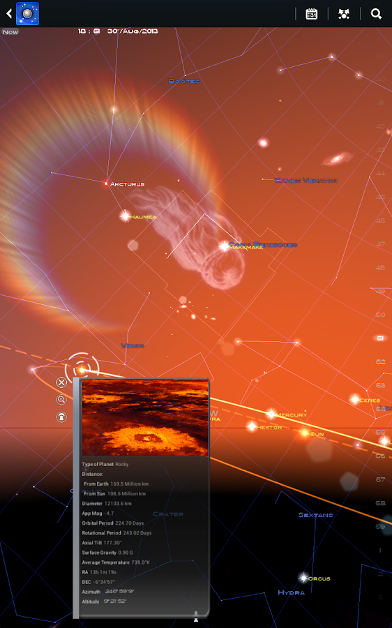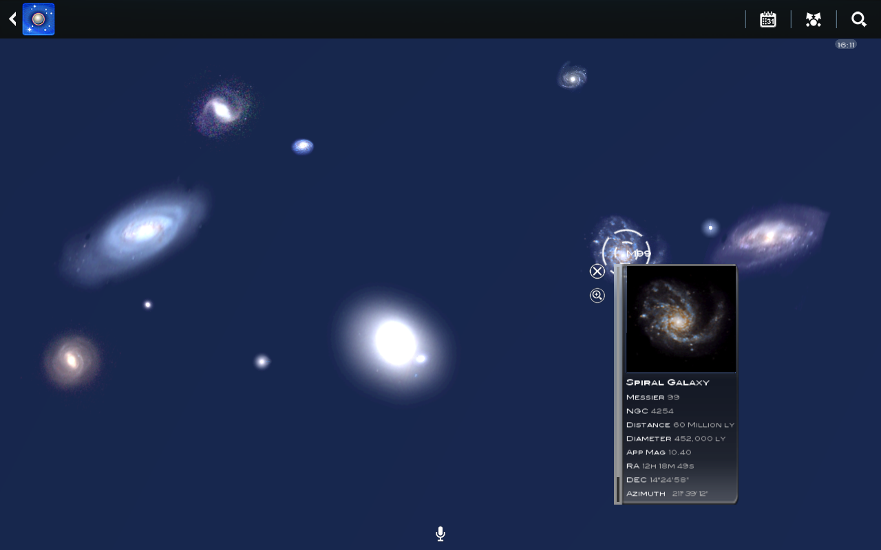 - Tap on anything in the sky and get the facts on what you are looking at, including distance and brightness.