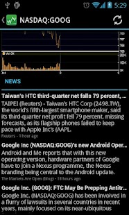 Finance for Android brings you streaming real-time quotes in this stock quotes and portfolio application. It synchronizes with your Google Finance portfolios, allows quick access to charts and lets you view the latest market and company news.